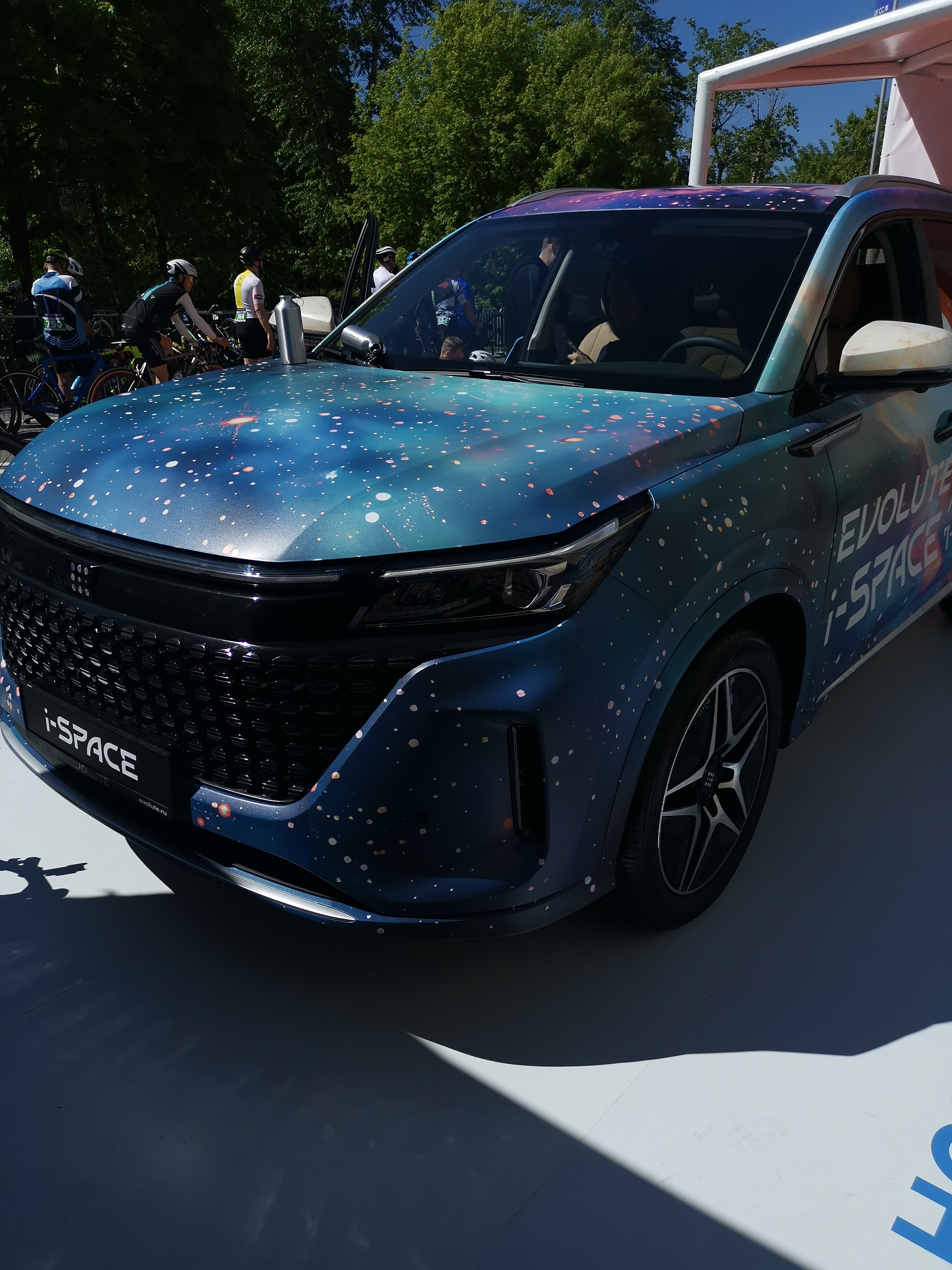 В эфире ГорбенкоТех. Починим всё, разберёмся во всем. И сегодня пару слов об автомобильной марке Evolute. EVOLUTE - это торговая марка «Моторинвест» — это работающее с 2014 года российское автосборочное предприятие в Липецкой области. В настоящий момент под маркой Evolute - осуществляется крупноузловая сборка автомобилей китайской компании Дунфэн. Бренд Evolute был одним из спонсоров велогонки “Садовое кольцо”, в которой я участвовал. В стартовом лагере был выставлен гибридный 7-ми местный кроссовер Evolute i-Space — Dongfeng 580. Можно было посмотреть автомобиль в деталях, поучаствовать в конкурсе и выиграть ценный приз. Давайте посмотрим как это было.